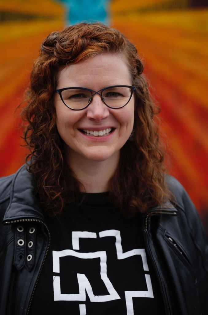 Peeking out from behind her cymbals, The Jenerator provides a solid backbone to the chaotic, flailing limbs that make up the rest of the band. When not commanding the rhythm section she can be found drinking whisky, listening to satanic metal or dancing around with a painted face hitting people with sticks.